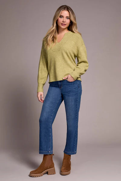 Stay effortlessly cozy in this relaxed sweater, crafted from soft blend yarn for a touch of luxurious warmth. The structured notch neckline frames the face with refined charm, while the puckered detail at the cuffs adds a flattering, tailored touch and allows for easy sleeve adjustment.